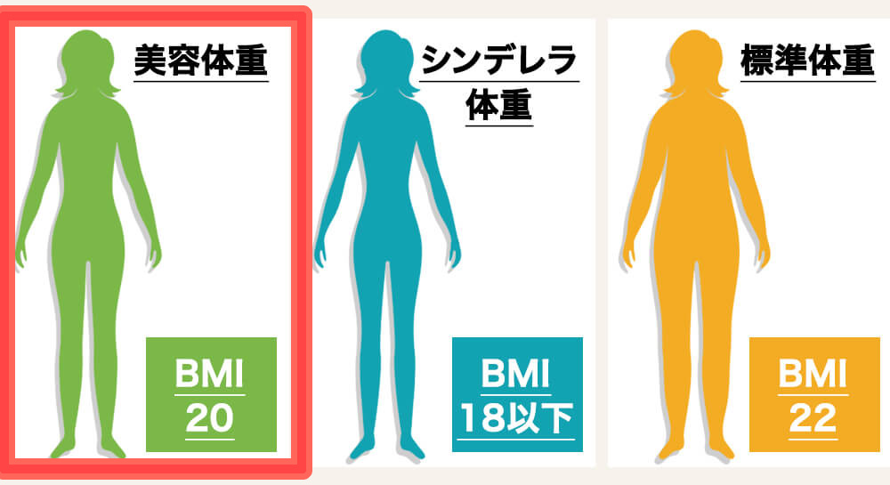 シンデレラ体重のほかに、美容体重と標準体重があります。