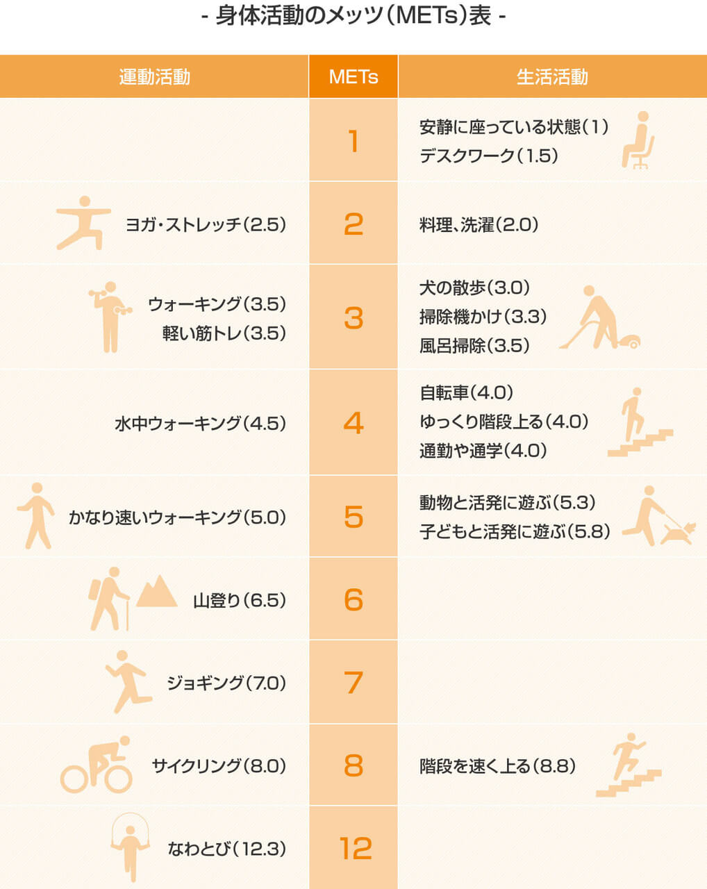 (引用:「運動強度(METs)」で見る、効果的な身体活動は?-スポーツ庁