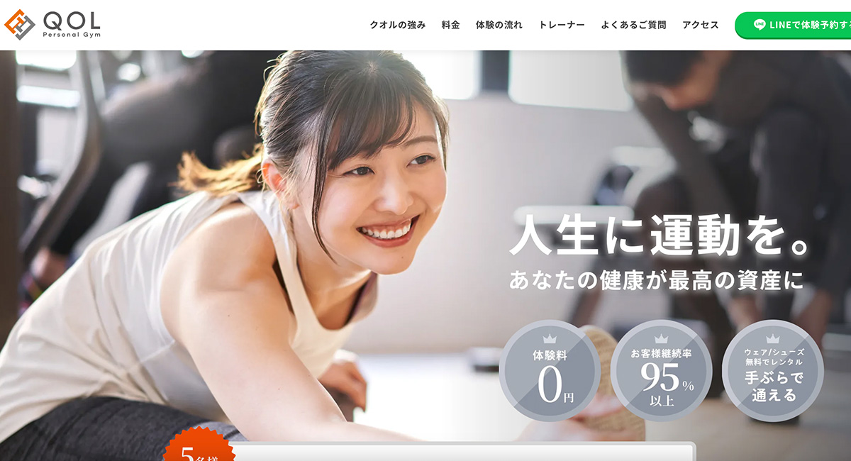 また、女性トレーナーが在籍する「QOL Personal Gym」などがあるので、男性トレーナーではなく、女性トレーナーから指導を受けたいという方は、チェックしてみてください。