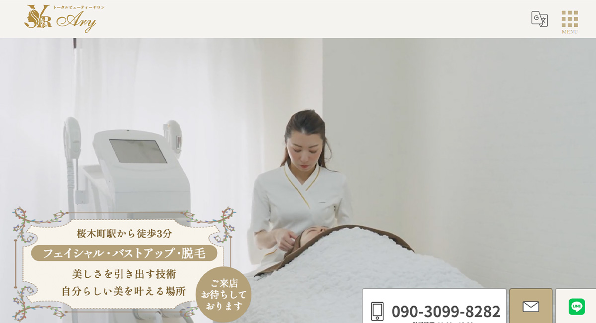 Aryは、JR京浜東北線・根岸線の桜木町駅から徒歩3分ほどのところにあるトータルビューティーサロンです。