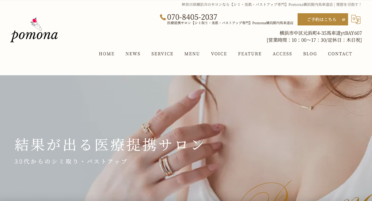 さらにPomonaには、シミ・シワケアや毛穴ケアのメニューもあるため、美肌を目指したい方にもおすすめです。