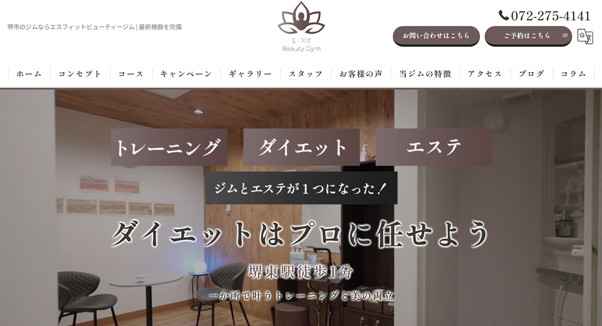 カウンセリングあり、体験あり(有料) | パーソナルトレーニング、エステ、岩盤浴、脱毛メニューもあり! | 南海高野線の堺東駅から徒歩で約1分 |