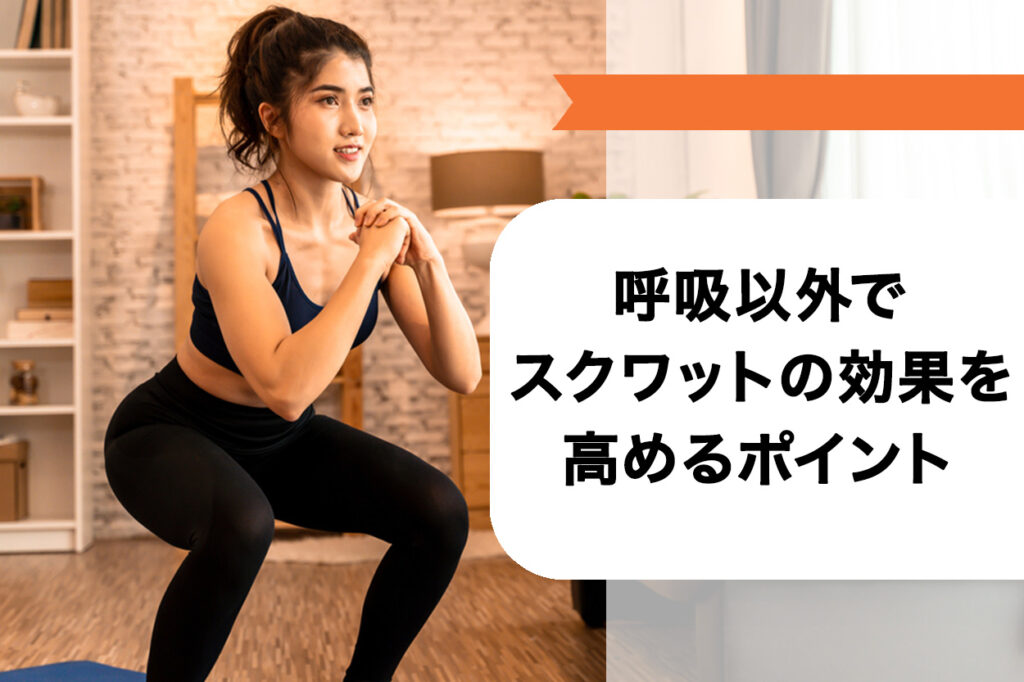 なお、呼吸とスクワットの動作は、ゆっくり速度を合わせれば効果がアップします。