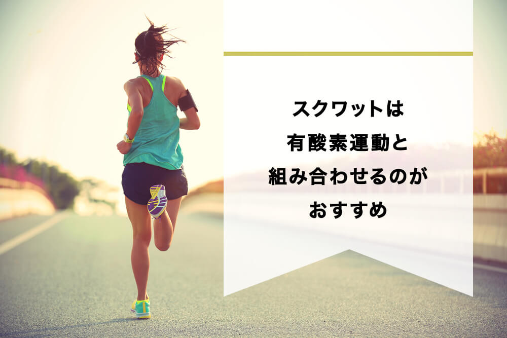 また、無酸素運動としてスクワットを行う場合は、有酸素運動と組み合わせるのがおすすめです。別々で行うよりも効果を感じやすくなります。