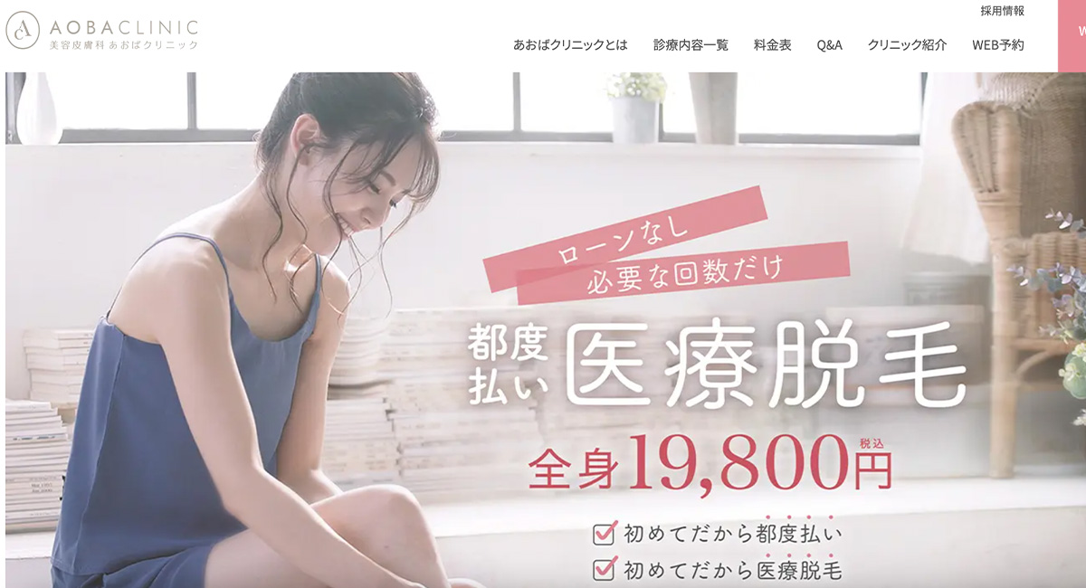 あおばクリニックの施術では、痛みが少ない「ラ・フィーユ」と多数の導入実績を持つ「ジェントルレーズ」を、肌質や部位によって使い分けます。都度払いで医療脱毛を受けることができるため、コース契約やローンを組むことに不安がある方も安心でしょう。