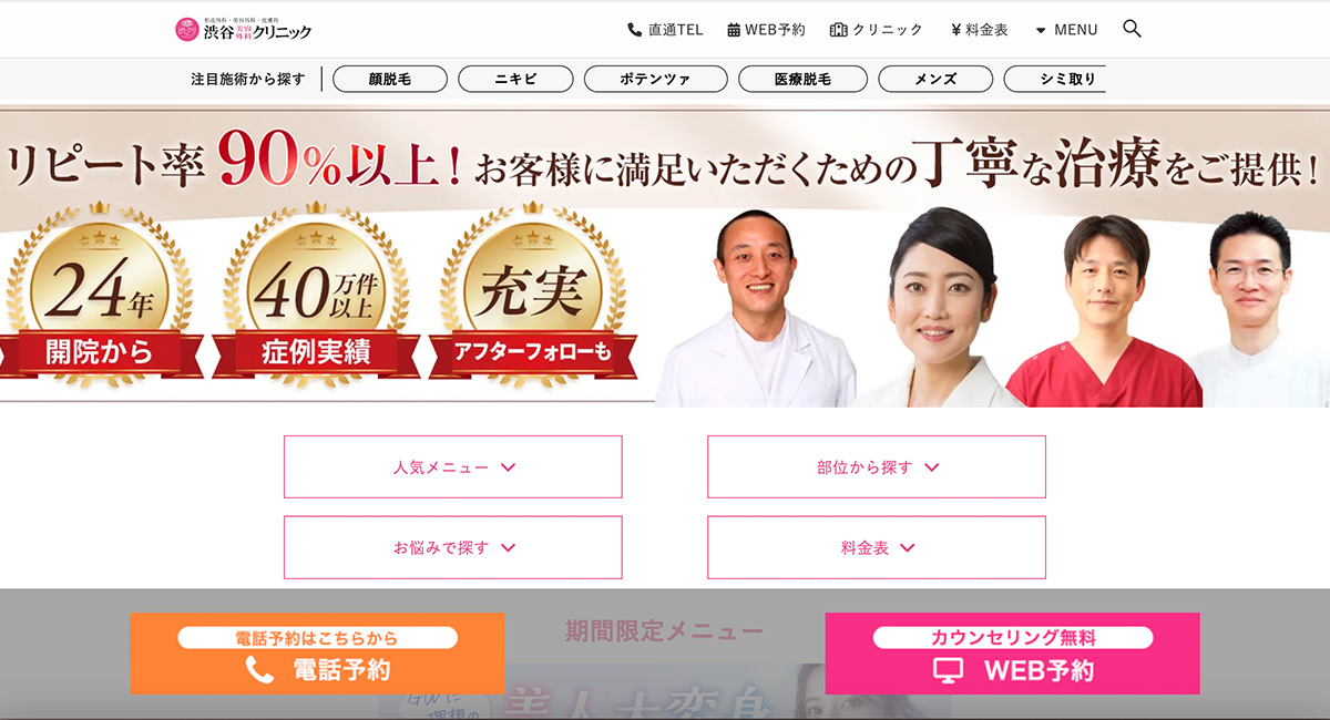 脱毛のほか、美肌や小顔、たるみ、AGA治療も行っており、多くの方が診療を受けています。