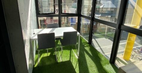 - 右手に1階に飲食店が入っている建物に店舗がございます。